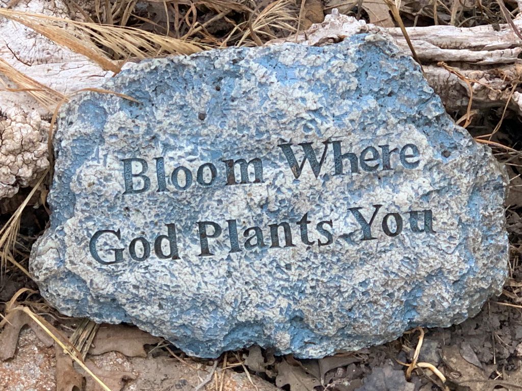 We’ve all seen this sign.  Perhaps instead you’ve seen “Bloom Where You Are Planted”.  I like the first version better, because God has a design for our lives, and He definitely planted me beside my husband and back on the farm.  Forty years ago, that was definitely not where I wanted to be.  But I’ve come to realize over many years that He knew exactly where to plant me.